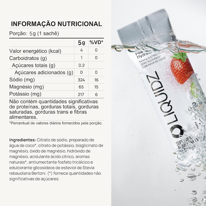 LIQUIDZ é uma solução de hidratação que combina os principais eletrólitos essenciais como sódio, potássio e magnésio. Esses minerais são fundamentais para manter a hidratação adequada, melhorar a função muscular e nervosa, e equilibrar o pH do corpo. LIQUIDZ é formulado para ser consumido diariamente, especialmente ao acordar, durante e após atividades físicas, para garantir uma hidratação eficiente e rápida.