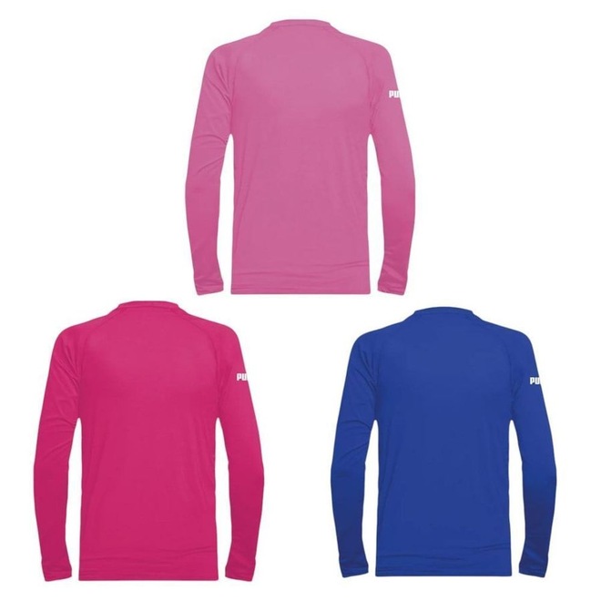 O Kit 3 Camisas Térmicas Puma Manga Longa UV50+ Juvenil é perfeito para proteger os jovens dos raios solares durante dias na piscina ou praia. Feitas em tecido leve e confortável de poliamida e elastano, as camisas possuem proteção UV50+ e certificação OEKO-TEX, garantindo segurança e conforto térmico. Com design minimalista e cor Preto, elas são ideais para treinos, natação ou uso no dia a dia.