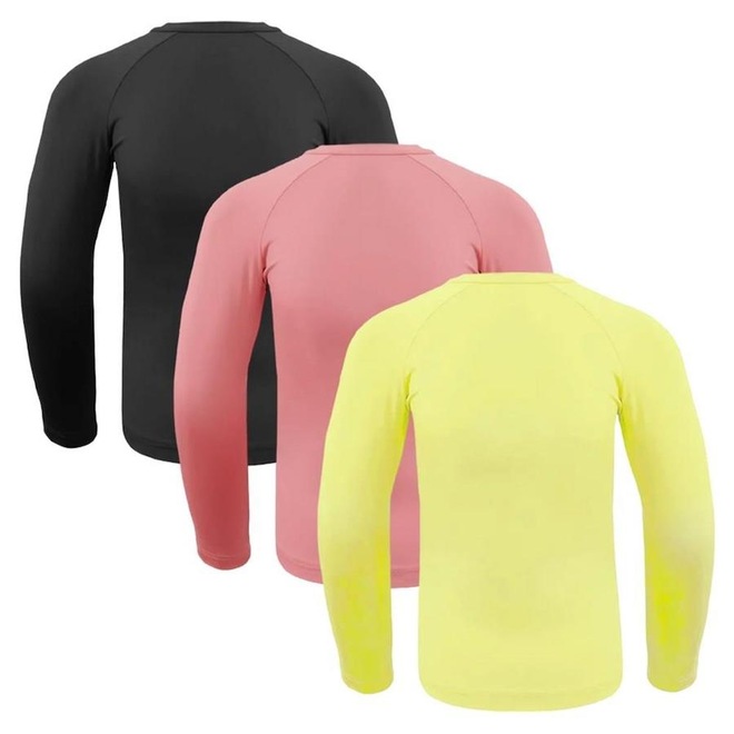 Com o Kit 3 Camisas Térmicas Selene Proteção UV Manga Longa Infantil os pequenos poderão brincar e se divertir com maior segurança durante os dias de sol. Sendo fabricada em 80% Poliamida e 20% Elastano, esse modelo apresenta maior elasticidade, garantindo um ótimo caimento ao corpo. Conta com mangas longas, maximizando a proteção contra os raios solares. A gola é do tipo redonda, fornecendo um visual mais limpo e confortável para seu uso. Além de garantir proteção térmica, a peça apresenta proteção UV50+, que te protege dos raios UV-A e UV-B, criando uma camada de proteção para sua pele. Cada peça tem cor única, garantindo conforto e estilo para as brincadeiras em dias de verão. Medidas aproximadas (cm): 2-26x38x26; 4-28x40x28; 6-30x42x30; 8-32x44x32 (Largura x Comprimento x Manga).