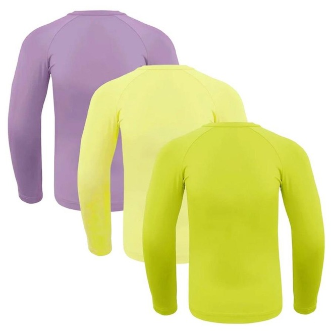 Com o Kit 3 Camisas Térmicas Selene Proteção UV Manga Longa Infantil os pequenos poderão brincar e se divertir com maior segurança durante os dias de sol. Sendo fabricada em 80% Poliamida e 20% Elastano, esse modelo apresenta maior elasticidade, garantindo um ótimo caimento ao corpo. Conta com mangas longas, maximizando a proteção contra os raios solares. A gola é do tipo redonda, fornecendo um visual mais limpo e confortável para seu uso. Além de garantir proteção térmica, a peça apresenta proteção UV50+, que te protege dos raios UV-A e UV-B, criando uma camada de proteção para sua pele. Cada peça tem cor única, garantindo conforto e estilo para as brincadeiras em dias de verão. Medidas aproximadas (cm): 2-26x38x26; 4-28x40x28; 6-30x42x30; 8-32x44x32 (Largura x Comprimento x Manga).