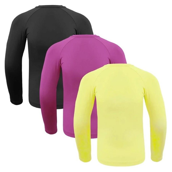 Com o Kit 3 Camisas Térmicas Selene Proteção UV Manga Longa Infantil os pequenos poderão brincar e se divertir com maior segurança durante os dias de sol. Sendo fabricada em 80% Poliamida e 20% Elastano, esse modelo apresenta maior elasticidade, garantindo um ótimo caimento ao corpo. Conta com mangas longas, maximizando a proteção contra os raios solares. A gola é do tipo redonda, fornecendo um visual mais limpo e confortável para seu uso. Além de garantir proteção térmica, a peça apresenta proteção UV50+, que te protege dos raios UV-A e UV-B, criando uma camada de proteção para sua pele. Cada peça tem cor única, garantindo conforto e estilo para as brincadeiras em dias de verão. Medidas aproximadas (cm): 2-26x38x26; 4-28x40x28; 6-30x42x30; 8-32x44x32 (Largura x Comprimento x Manga).