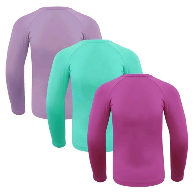 Com o Kit 3 Camisas Térmicas Selene Proteção UV Manga Longa Infantil os pequenos poderão brincar e se divertir com maior segurança durante os dias de sol. Sendo fabricada em 80% Poliamida e 20% Elastano, esse modelo apresenta maior elasticidade, garantindo um ótimo caimento ao corpo. Conta com mangas longas, maximizando a proteção contra os raios solares. A gola é do tipo redonda, fornecendo um visual mais limpo e confortável para seu uso. Além de garantir proteção térmica, a peça apresenta proteção UV50+, que te protege dos raios UV-A e UV-B, criando uma camada de proteção para sua pele. Cada peça tem cor única, garantindo conforto e estilo para as brincadeiras em dias de verão. Medidas aproximadas (cm): 2-26x38x26; 4-28x40x28; 6-30x42x30; 8-32x44x32 (Largura x Comprimento x Manga).