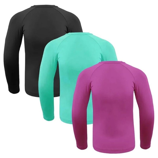 Com o Kit 3 Camisas Térmicas Selene Proteção UV Manga Longa Infantil os pequenos poderão brincar e se divertir com maior segurança durante os dias de sol. Sendo fabricada em 80% Poliamida e 20% Elastano, esse modelo apresenta maior elasticidade, garantindo um ótimo caimento ao corpo. Conta com mangas longas, maximizando a proteção contra os raios solares. A gola é do tipo redonda, fornecendo um visual mais limpo e confortável para seu uso. Além de garantir proteção térmica, a peça apresenta proteção UV50+, que te protege dos raios UV-A e UV-B, criando uma camada de proteção para sua pele. Cada peça tem cor única, garantindo conforto e estilo para as brincadeiras em dias de verão. Medidas aproximadas (cm): 2-26x38x26; 4-28x40x28; 6-30x42x30; 8-32x44x32 (Largura x Comprimento x Manga).