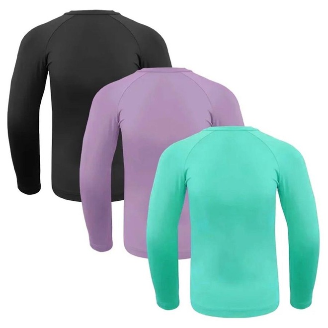 Com o Kit 3 Camisas Térmicas Selene Proteção UV Manga Longa Infantil os pequenos poderão brincar e se divertir com maior segurança durante os dias de sol. Sendo fabricada em 80% Poliamida e 20% Elastano, esse modelo apresenta maior elasticidade, garantindo um ótimo caimento ao corpo. Conta com mangas longas, maximizando a proteção contra os raios solares. A gola é do tipo redonda, fornecendo um visual mais limpo e confortável para seu uso. Além de garantir proteção térmica, a peça apresenta proteção UV50+, que te protege dos raios UV-A e UV-B, criando uma camada de proteção para sua pele. Cada peça tem cor única, garantindo conforto e estilo para as brincadeiras em dias de verão. Medidas aproximadas (cm): 2-26x38x26; 4-28x40x28; 6-30x42x30; 8-32x44x32 (Largura x Comprimento x Manga).
