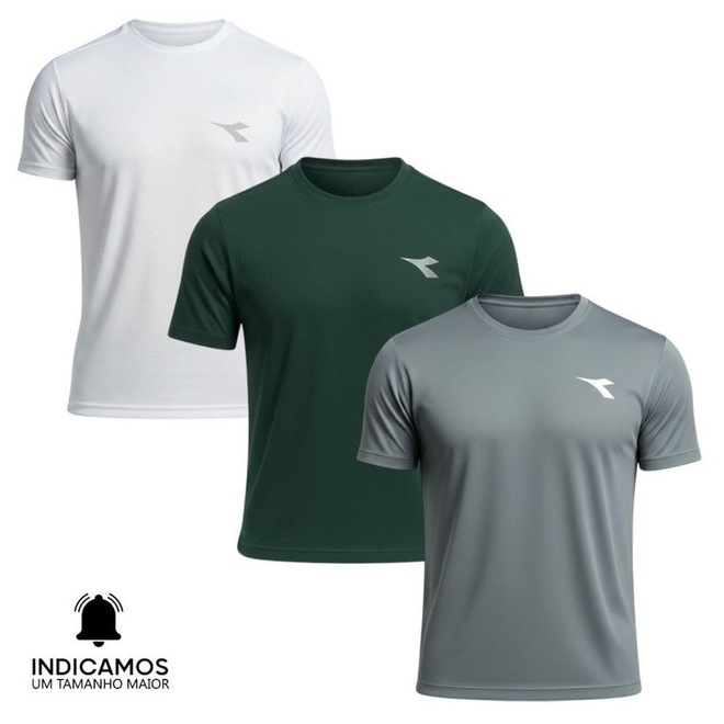O Kit 3 Camisetas Diadora Small Logo Masculina combina leveza, conforto e estilo esportivo para o dia a dia. Produzidas em malha dupla de microfibra de poliéster com efeitos pontilhados, garantem toque macio, respirabilidade e secagem rápida, sendo ideais para treinos, jogos ou uso casual. Com caimento Regular Fit que se ajusta bem a diferentes biótipos e gola aplicada que proporciona conforto adicional, o logo discreto em termocolante finaliza o visual com autenticidade e praticidade.