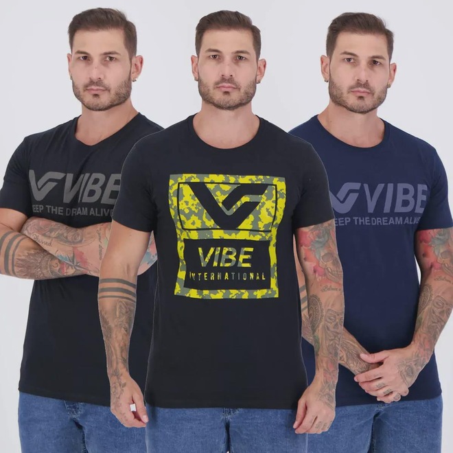 Contém 3 camisetas nas cores preta e marinho
