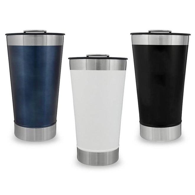 O Kit 3 Copos Térmicos De Stanley Pint Com Tampa 473ml é ideal para você diversificar na hora de armazenar suas bebidas. Os copos foram produzidos em aço inox 18/8 e parede dupla com vácuo, o que garante uma excelente proteção térmica para suas bebidas podendo manter a temperatura de bebidas geladas em até quatro horas, uma hora para bebidas quentes e dezessete horas caso contenha gelo. Além disso, eles ainda possuem uma tampa com uma ampla abertura e um abridor de garrafas acoplado. Medidas aproximadas (cm): 9,6 x 9,6 x 17,2 (Comprimento x Largura x Altura). Volume: 437ml.
