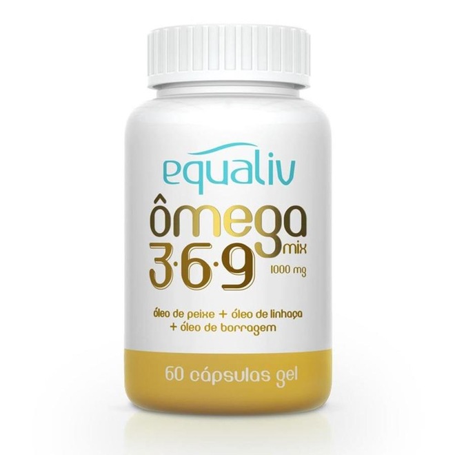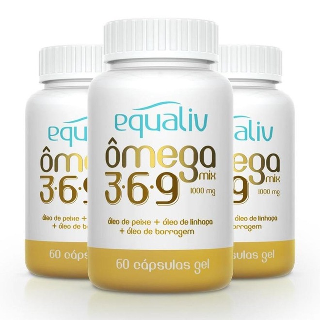 Equaliv Ômega Mix (ômega 3, 6 e 9) é um suplemento à base de óleo de peixe, óleo de linhaça e óleo de borragem.