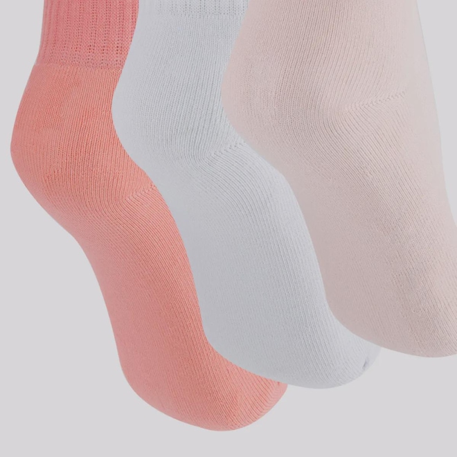 Composição: 63% Algodão, 26% Poliéster, 08% Poliamida e 03% Elastano Contém: 01 par na cor branca e 02 pares na cor rosa Indicado para: Casual Origem: Nacional Gênero: Feminino Cano: Baixo Tamanho: 34-39