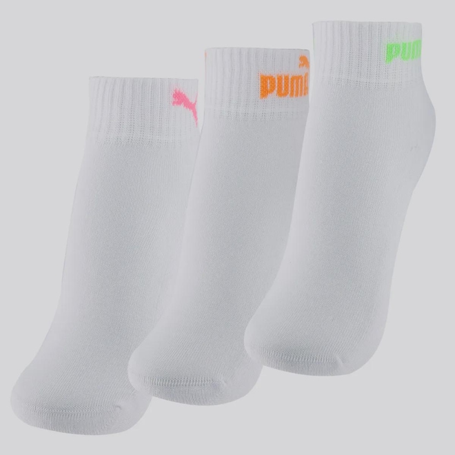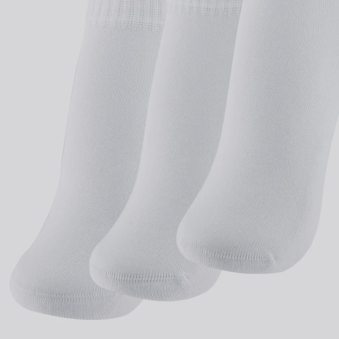Composição: 66% Algodão, 23% Poliéster, 08% Poliamida e 03% Elastano Contém: 03 pares de meias na cor branca Indicada para: Casual Origem: Nacional Gênero: Feminino Cano: Baixo Tamanhos 34-39