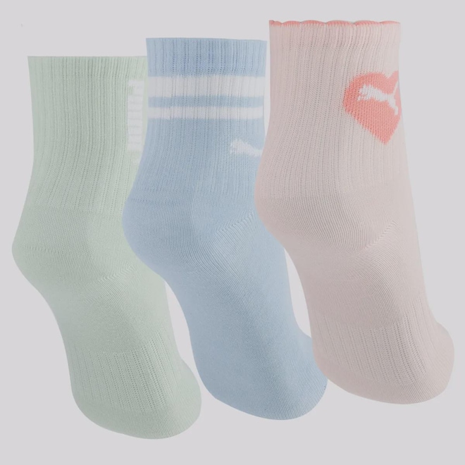 Composição: 54% Algodão, 33% Poliamida, 10% Poliéster e 03% Elastano Contém: 03 pares de meias nas cores rosa, verde e branca Indicada para: Casual Gênero: Feminino Origem: Nacional Cano: Longo