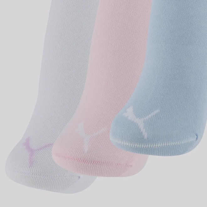 Composição: 66% Algodão, 29% Poliamida, 03% Elastano e 02 % Outra fibra Contém: 03 pares - 01 par na cor branca, 01 par na cor azul e 01 par na cor rosa Peso aproximado: 70 g Origem: Nacional Gênero: Feminino Cano: Médio Tamanho: 34 a 39