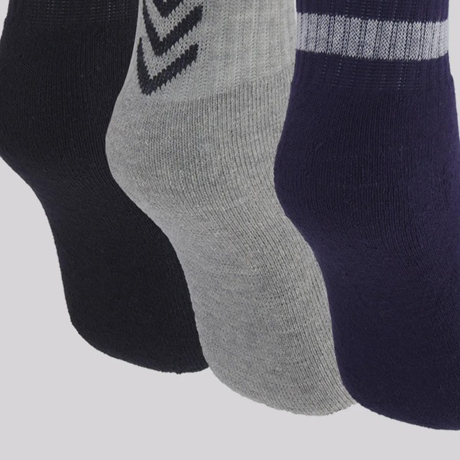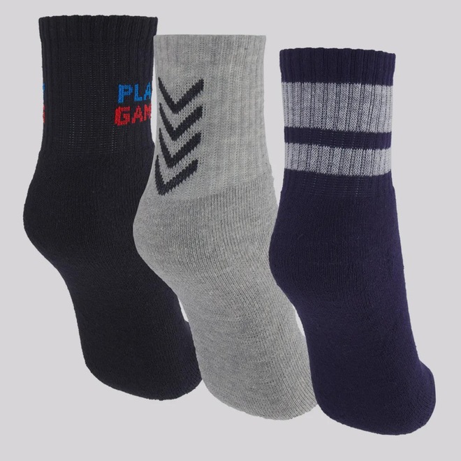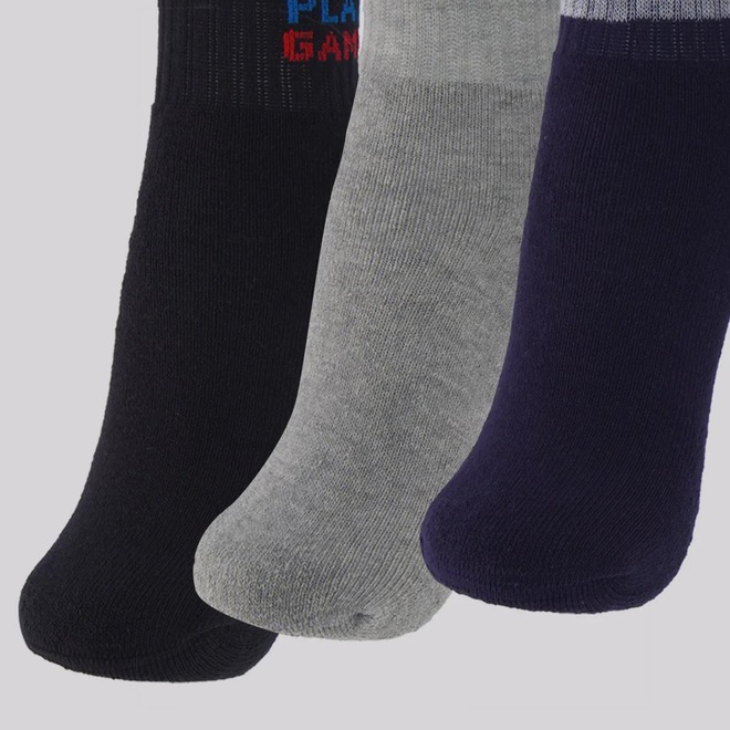 Composição cinza: 65% Algodão, 21% Poliamida, 13% Poliéster e 01% Elastano Contém: 03 pares nas cores preta, marinho e cinza Origem: Nacional Gênero: Unissex Idade: Juvenil Cano: Curto Tamanho: 34-38