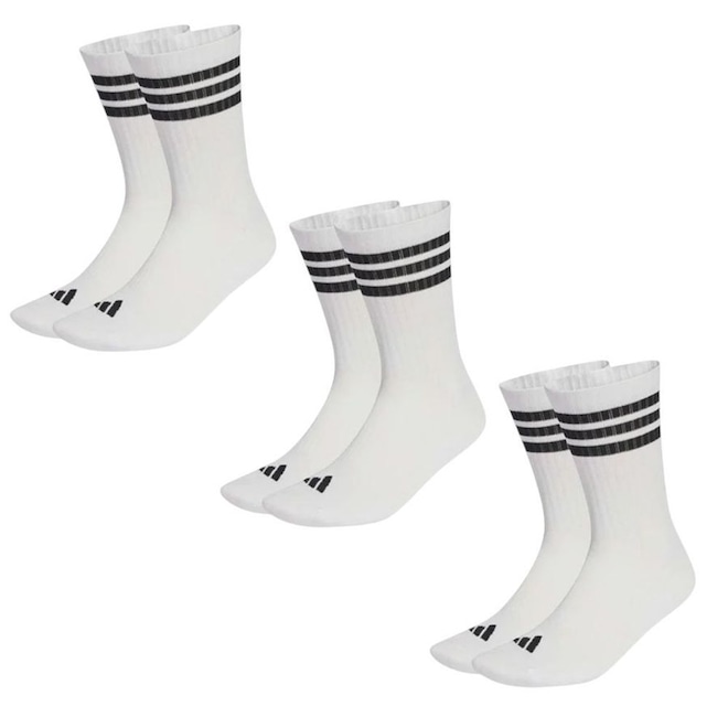 O Kit com 3 Pares de Meias Adidas Cano Médio 3 Stripes Essentials oferece conforto, suporte e estilo esportivo para a rotina diária. Desenvolvidas para uso prolongado, contam com amortecimento leve que garante maciez e proteção a cada passo. O arco justo proporciona melhor ajuste e estabilidade, enquanto o visual clássico com as Três Listras e o logo Adidas reforça a autenticidade da marca, tornando o kit ideal para atividades do dia a dia ou prática esportiva leve.