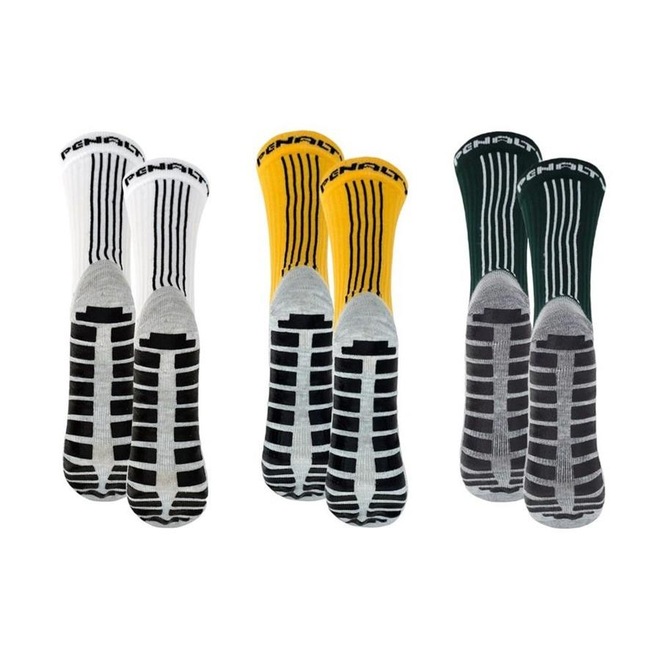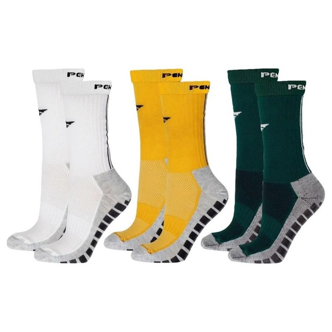 O Kit 3 Pares de Meias Penalty Grip Masculina é perfeito para quem busca conforto e desempenho nos jogos de futebol.Ameia deste kitt foi confeccionada com uma composição de poliéster e poliamida, ela é resistente e durável, garantindo uma alta perf