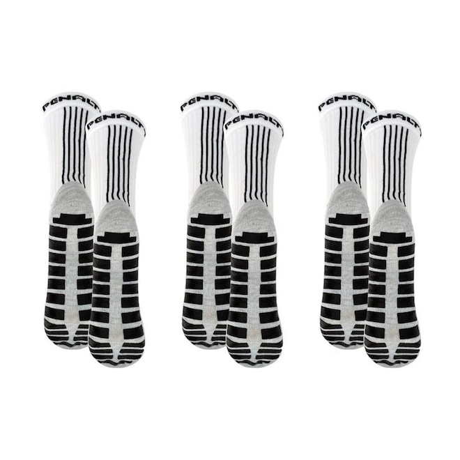 O Kit 3 Pares de Meias Penalty Grip Masculina é perfeito para quem busca conforto e desempenho nos jogos de futebol.Ameia deste kitt foi confeccionada com uma composição de poliéster e poliamida, ela é resistente e durável, garantindo uma alta perf