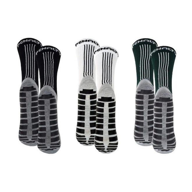 O Kit 3 Pares de Meias Penalty Grip Masculina é perfeito para quem busca conforto e desempenho nos jogos de futebol.