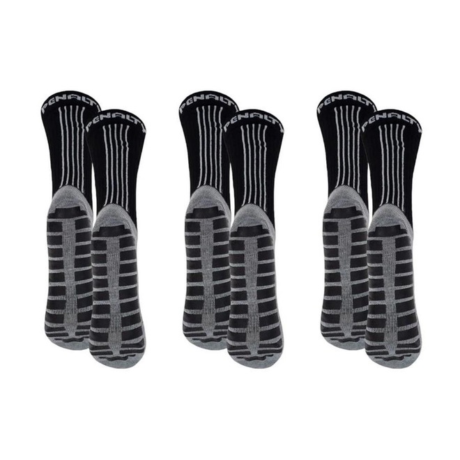 O Kit 3 Pares de Meias Penalty Grip Masculina é perfeito para quem busca conforto e desempenho nos jogos de futebol.Ameia deste kitt foi confeccionada com uma composição de poliéster e poliamida, ela é resistente e durável, garantindo uma alta perf