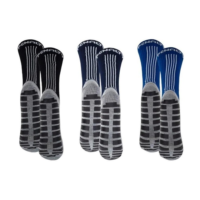O Kit 3 Pares de Meias Penalty Grip Masculina é perfeito para quem busca conforto e desempenho nos jogos de futebol.Ameia deste kitt foi confeccionada com uma composição de poliéster e poliamida, ela é resistente e durável, garantindo uma alta perf