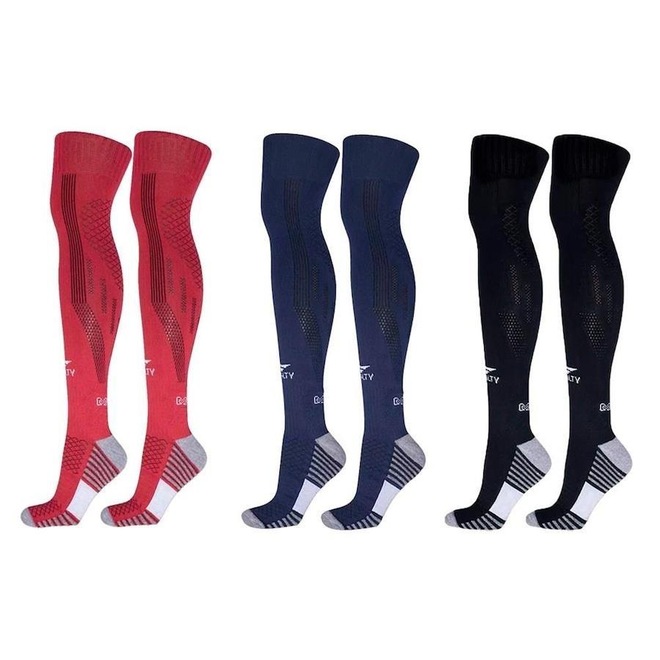 O Kit 3 Pares De Meiões Penalty Max Juvenil é ideal para os jovens atletas entrarem em campo com mais conforto e estilo. Confeccionado em materiais resistentes e de alta qualidade, como poliéster, elastano e poliamida, o modelo traz a tecnologia Flot que proporciona maior ventilação, aumentando a respirabilidade. Além disso, o tecido é um isolante térmico e conta com faixa tensora nos tornozelos, oferecendo maior proteção e sola atoalhada para maior conforto. Também conta com o sistema de secagem rápida Dry One. Com um design moderno, o meião Penalty Max Juvenil é a peça chave que faltava para completar seu visual esportivo. Tamanho único :33-48.