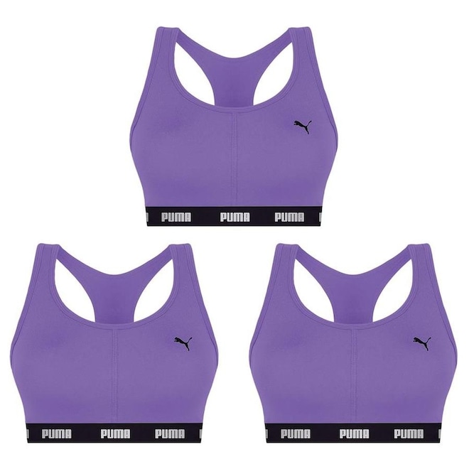 Kit de Tops Fitness com Bojo Puma Nadador - 3 Unidades - Feminino