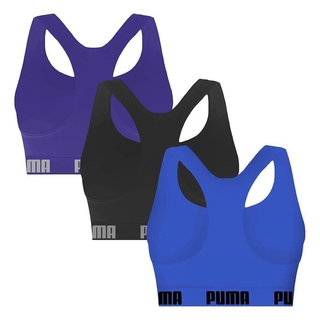 - Sobre o produto - Kit Top Puma Nadador Sem Costura - Feminino - 3 UnidadesO Kit 3 Tops Puma Nadador Sem Costura é ideal para usar por baixo de regatas para treinos e dia a dia.- Confeccionado em tecido super leve e macio, o modelo traz acabamento canelado com estampas da marca na barra, dando maior segurança. - Conta com alça grossa, decote em U, e costas com modelagem nadador. - Medidas aproximadas (cm): P-30x12/M-32x14/G-34x16/EG-36x18 (largura x comprimento do busto).