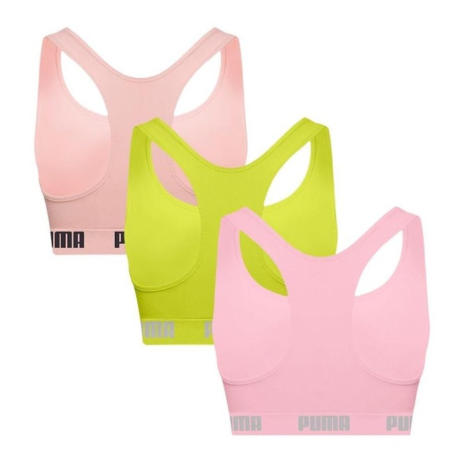 Kit Tops Fitness sem Bojo Puma Nadador sem Costura - 3 Unidades - Feminino