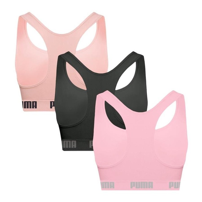 Kit Tops Fitness sem Bojo Puma Nadador sem Costura - 3 Unidades - Feminino