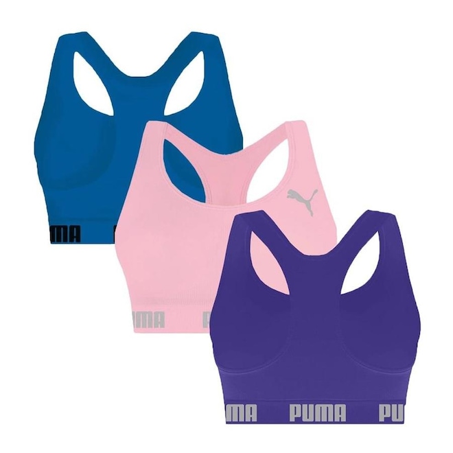 Kit Top Fitness Puma Nadador sem Costura - 3 Unidades - Feminino