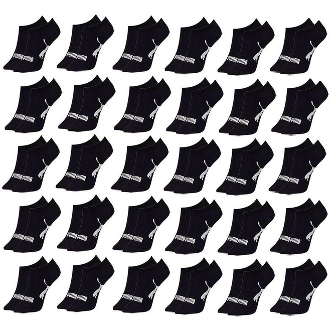 Com o Kit 30 Pares De Meia Puma Sapatilha Esportiva, você garante o conforto nos treinos e nas práticas de atividades físicas. Confeccionada com a leveza do algodão e elasticidade da poliamida, as peças possuem toque macios e reforço no calcanhar e na ponta, oferecendo alta durabilidade e ventilação. Traz logo da marca em contraste encima e embaixo, e elástico central para ajuste perfeito aos pés. Medidas aproximadas cm: 34/39- 20x09 (Comprimento do Pé x Largura).