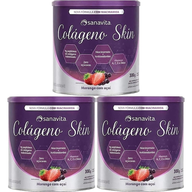 3 - Colágeno Skin - 300g Morango Com Açaí - Sanavita