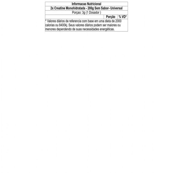 Ingredientes - Creatine Monohidratada - 200g Sem Sabor - Universal