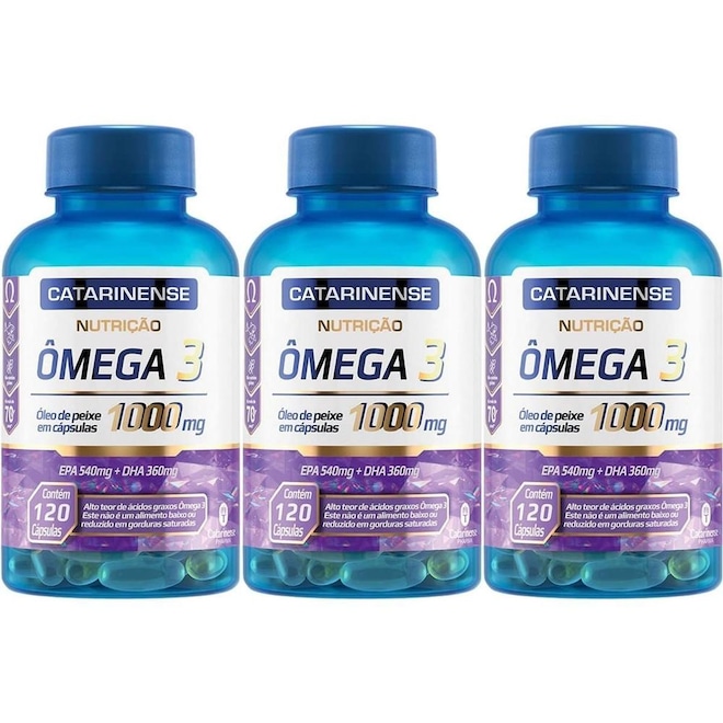 O ômega 3 mais vendido do Brasil* é fabricado pelo Catarinense Pharma. Sua fórmula possui 1000mg de óleo de peixe, sendo que em três cápsulas contém 540mg EPA e 360mg DHA. O consumo de ácidos graxos ômega 3 auxilia na manutenção de níveis saudáveis de triglicerídeos, desde que associado a uma alimentação equilibrada e hábitos de vida saudáveis. Alto teor de ácidos graxos ômega 3. *(Close-Up RM MAT 05/2019.)
