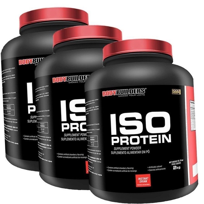 Kit Whey Protein Isolado Bodybuilders - Morango - 2kg - 3 potes