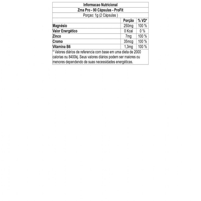 Ingredientes - Zma Pro - 90 Cápsulas - ProFit