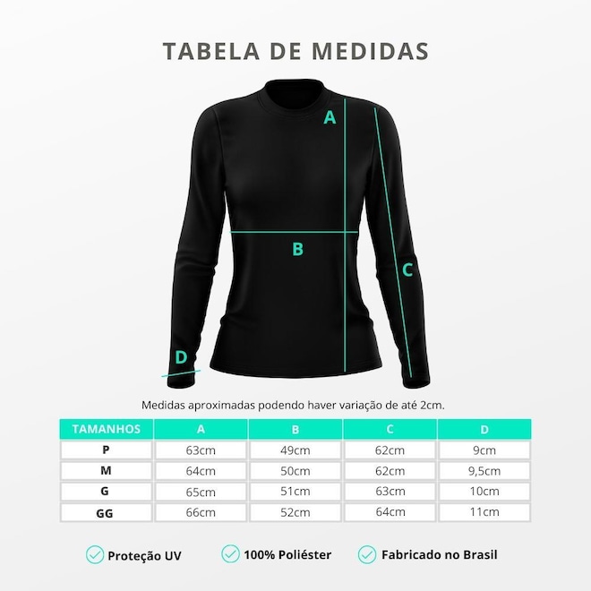 CAMISETA FEMININA MANGA LONGA SEGUNDA PELE TÉRMICA PROTEÇÃO SOLAR UV 50