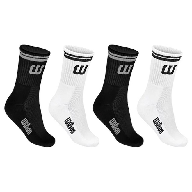 O Kit 4 Pares de Meias Wilson Cano Longo é ideal para os tenistas que buscam conforto e desempenho durante as partidas.Confeccionadas em algodão, poliamida e elastano, as peças promovem toque macio e leveza aos pés, além de serem duráveis e resistentes.