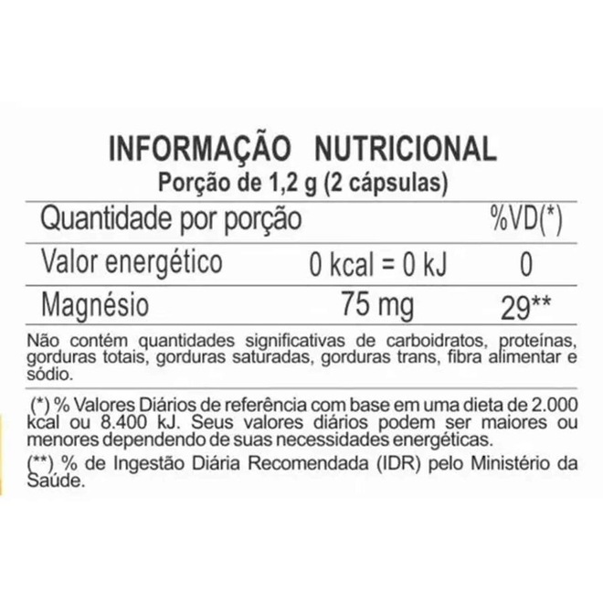 Magneclor Cloreto de Magnésio Hexahidratado P.A 600mg na proporção de 2 cápsulas
