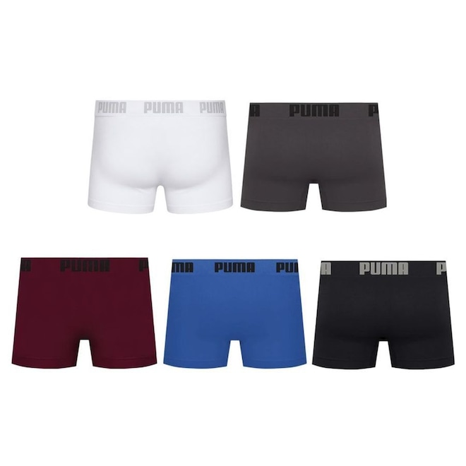 O kit com 5 cuecas boxer Puma Sem Costura é a opção ideal para quem prioriza conforto e mobilidade ao longo do dia. Com design moderno e sem costuras externas, evita atritos com a pele e garante uma experiência de uso suave. Produzidas em poliamida com elastano e polipropileno, oferecem toque macio e ajuste anatômico, além de cós elástico com logo da marca para um visual esportivo e firmeza na cintura.