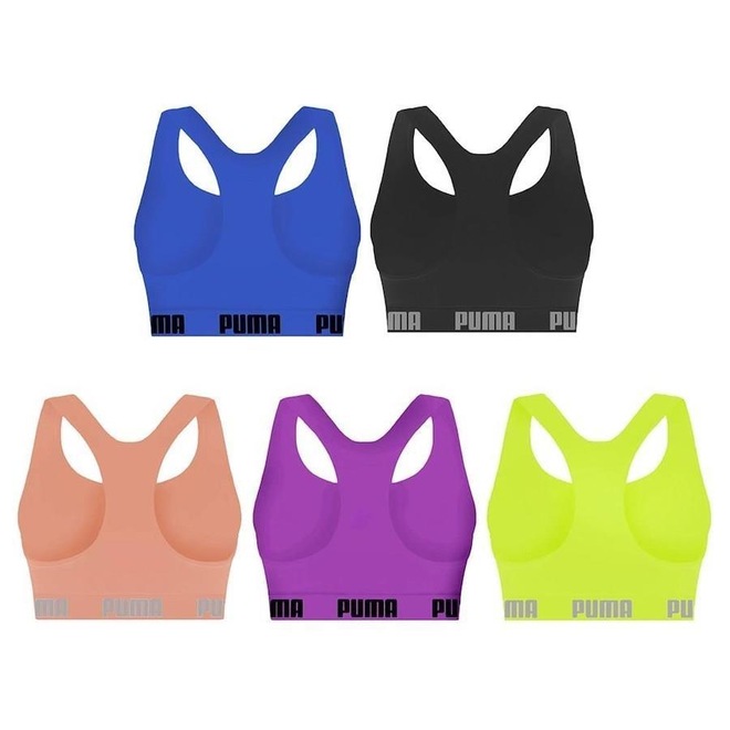 Kit Top Fitness Puma Nadador Sem Costura - Feminino - 5 Unidades