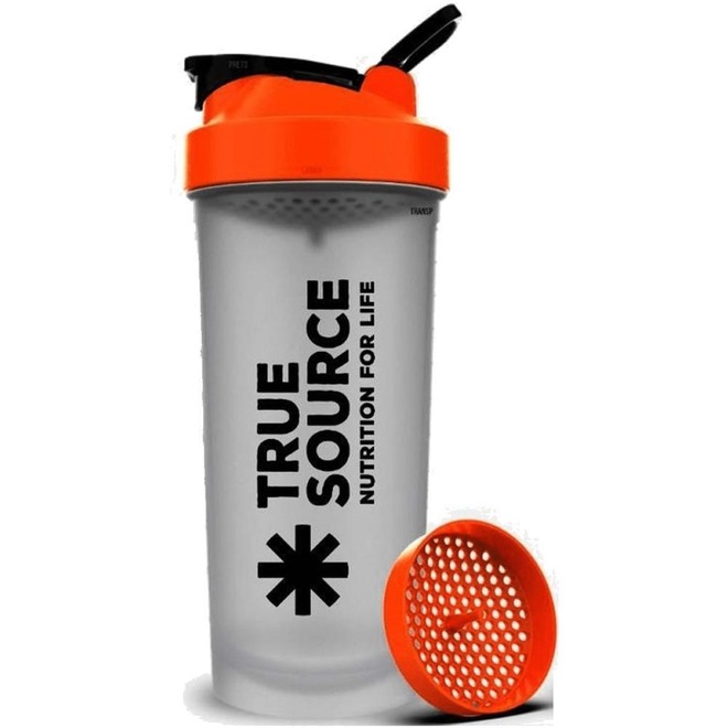 5 - Coqueteleira Slim - 600ml Transparente e Laranja - True Source