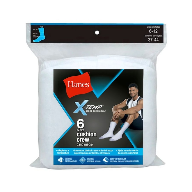 - Sobre o produto - Conforto, tecnologia e praticidade reunidos em um combo completo. Este kit traz a queridinha da Zorba, 6 cuecas Zorba Boxer Seamless Algodão — com tecnologia MaxFresh, que regula a sensação térmica e protege contra odores e bactérias, garantindo frescor o dia todo — e 6 pares de meias Hanes Cano Médio, atoalhadas internamente, com punho confortável, calcanhar e ponteiras reforçadas, e tecnologia X-Temp®, que se adapta às mudanças de temperatura para manter seus pés frescos. Um combo ideal para homens que buscam conforto, frescor e praticidade no dia a dia.