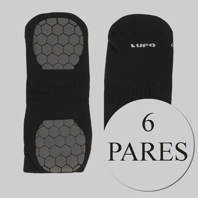 Contém: 6 paresComposição: 98% Poliamida e 02% ElastanoCor predominante: PretaIndicada para: TreinoOrigem: NacionalGênero: UnissexCano: BaixoPeso aproximado: 60g o par Nº 41-44