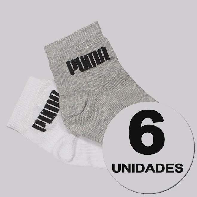 Composição: 51% Algodão, 37% Poliamida, 09% Poliéster e 03% Elastano Contém: 03 pares cinza e 03 pares branco Origem: Nacional Idade: Infantil Cano: Baixo