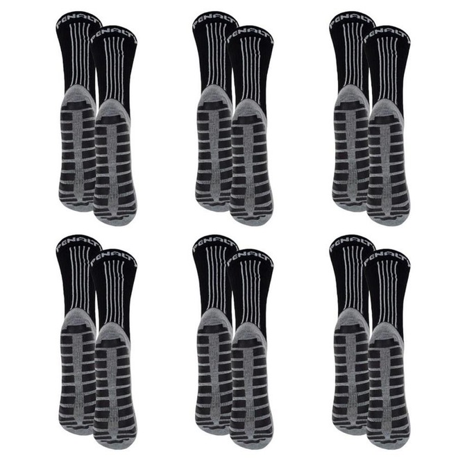 O Kit 6 Pares de Meias Penalty Grip Masculina é perfeito para quem busca conforto e desempenho nos jogos de futebol.Ameia deste kitt foi confeccionada com uma composição de poliéster e poliamida, ela é resistente e durável, garantindo uma alta perf