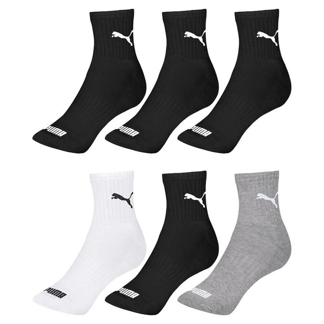 Com o Kit 6 Pares de Meia Puma Cano Médio Esportiva, você garante o conforto durante os treinos e práticas de atividades físicas. Desenvolvida com a leveza do algodão e elasticidade da poliamida, as peças possuem toque macio, reforço no calcanhar e na ponta, oferecendo alta durabilidade e melhor ventilação. Traz logo da marca em contraste no tornozelo, e elástico central para ajuste perfeito aos pés. Medidas aproximadas cm: 23x11 (Comprimento do Pé x Largura).