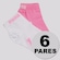 Composição: 56% Algodão, 39% Poliamida, 03% Elastano e 02% Outras fibras Contém: 03 pares nas cores branca e 03 pares nas cores rosa Indicado para: Casual Origem: Nacional Gênero: Feminino Idade: Infantil Cano: Baixo Tamanho: 17-20 21-24