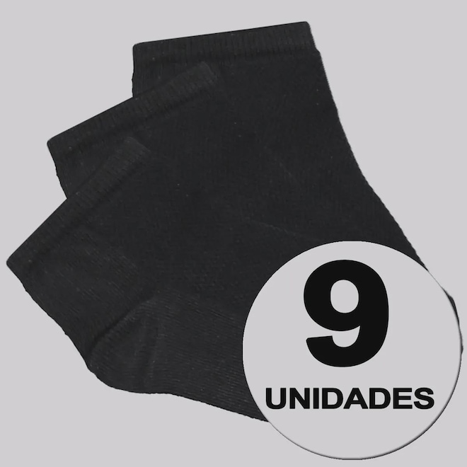 Composição: 60% Algodão, 37% Poliamida, 02% Poliéster e 01% Elastano Contém: 09 pares nas cores preto Gênero: Unissex Origem: Nacional Idade: Infantil Cano: Curto