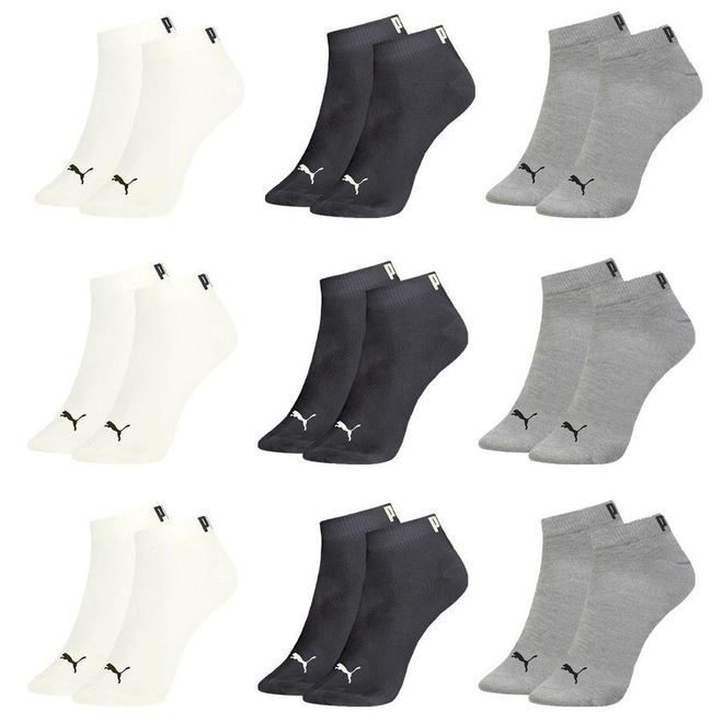Com o Kit 9 Pares De Meias Puma Logo, você garante conforto durante os treinos e práticas de atividades físicas. Desenvolvida com a leveza do algodão e elasticidade da poliamida, as peças possuem toque macio, reforço no calcanhar e na ponta, oferecendo alta durabilidade e melhor ventilação. Traz logo da marca em contraste, e elástico central para ajuste perfeito aos pés. Medidas aproximadas (cm): 39/43- 22x09 (Comprimento do Pé x Largura).ref: M157SC