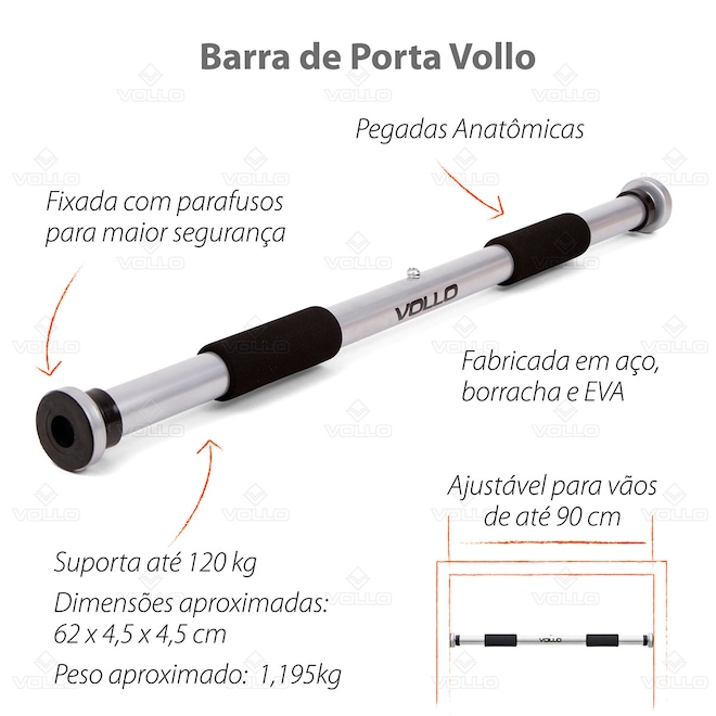 A Barra de Porta Vollo é a aliada perfeita para fortalecer a musculatura superior, incluindo braços, costas, peito e abdômen, utilizando apenas o peso do seu corpo. Seu design com pegada anatômica garante conforto e segurança durante os exercícios. Além disso, a instalação é simples.